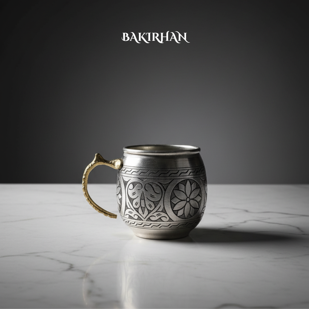 50% İndirimİşlemeli Gümüş Renkli Bakır Bardak