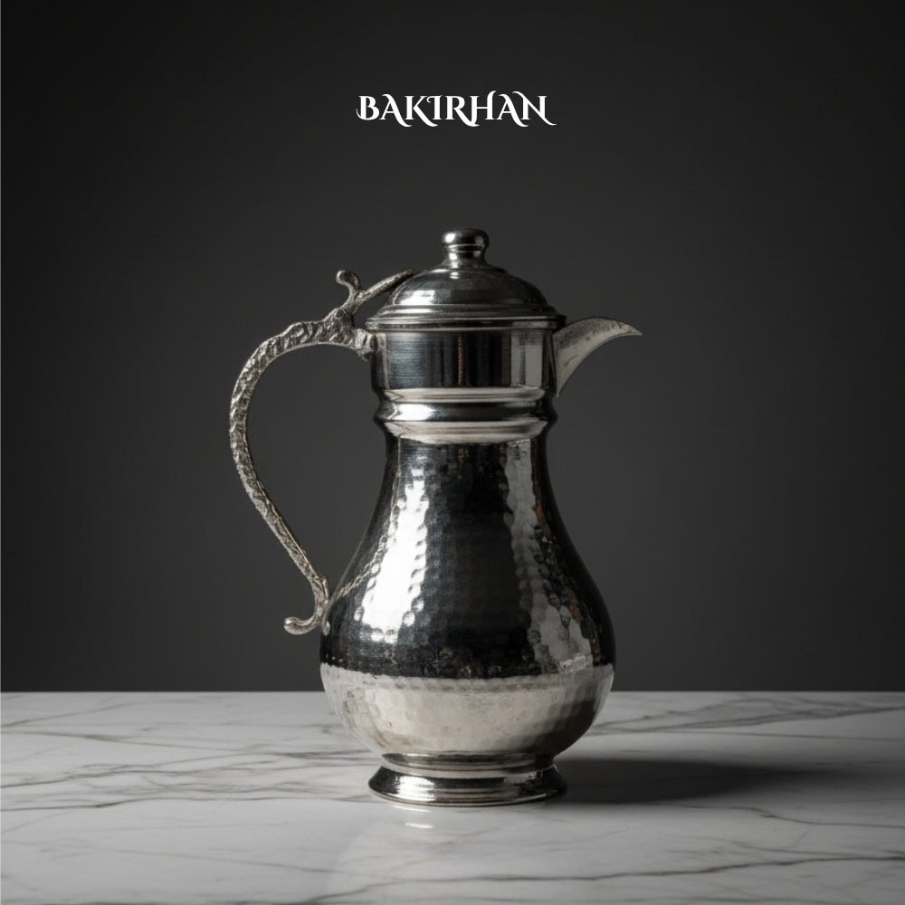 Kapaklı, Kalaylı Saf Bakır Sürahi Gümüş Renk (2.5L)
