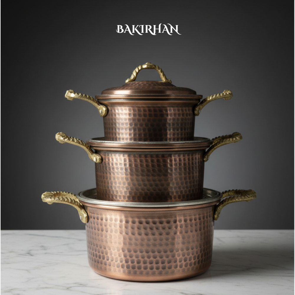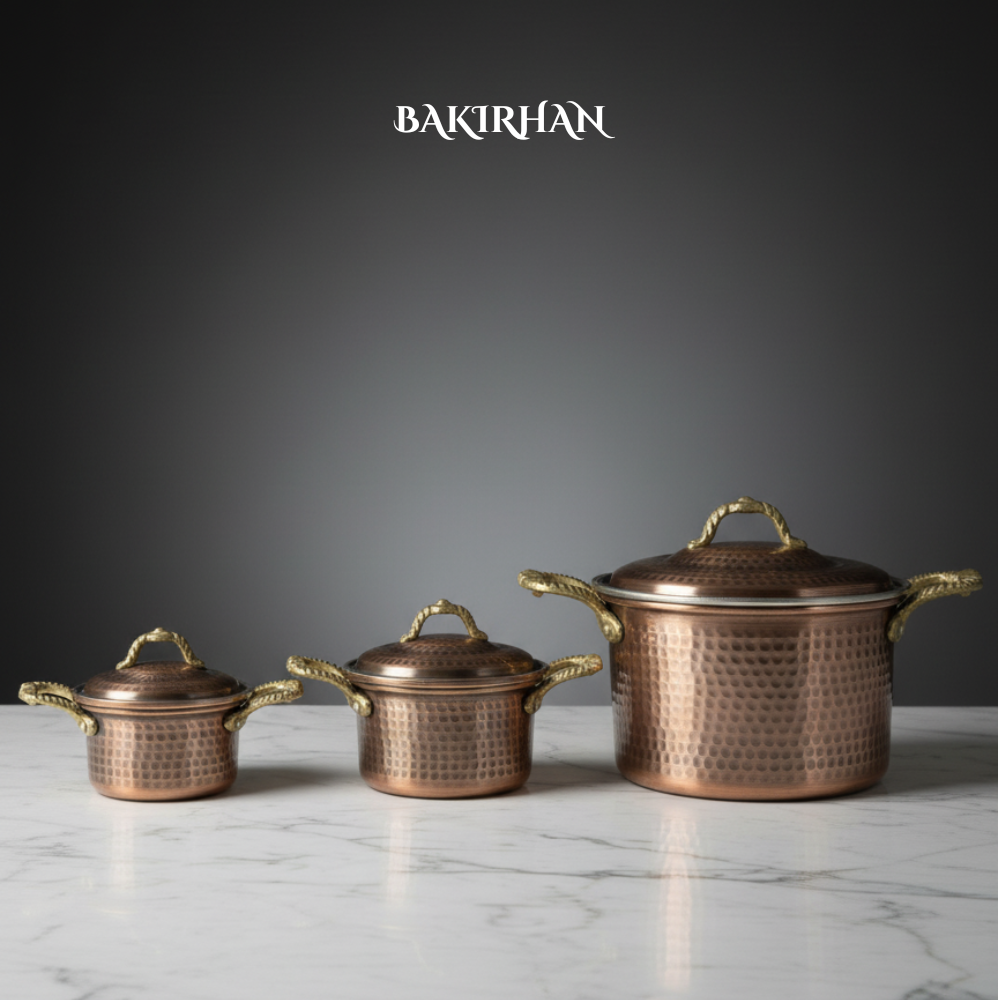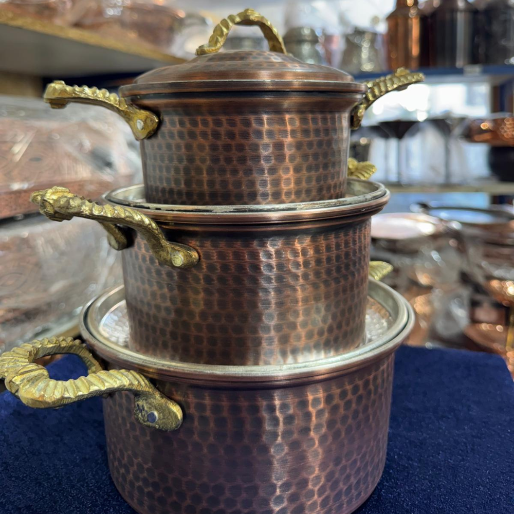 Siyah Dövme Bakır Tencere Seti (3 Boy)