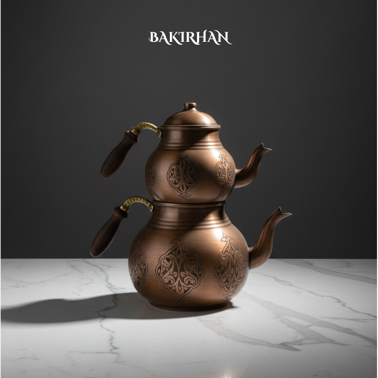 Siyah İşlemeli Saf Bakır Çaydanlık